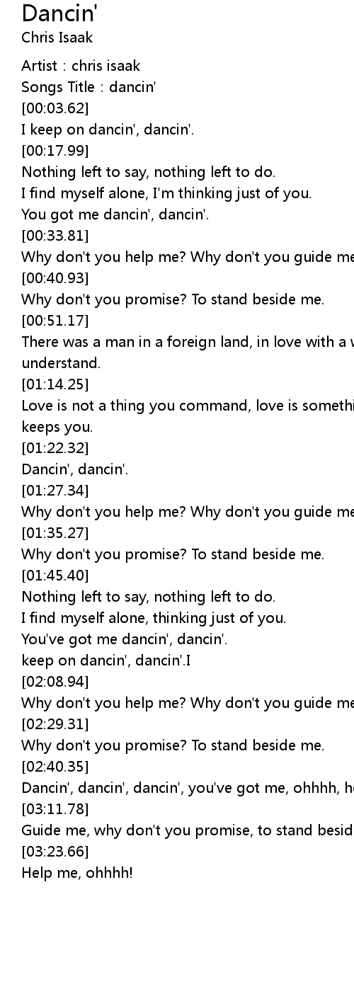 | [00:01.46] | Songs Title:dancin' |