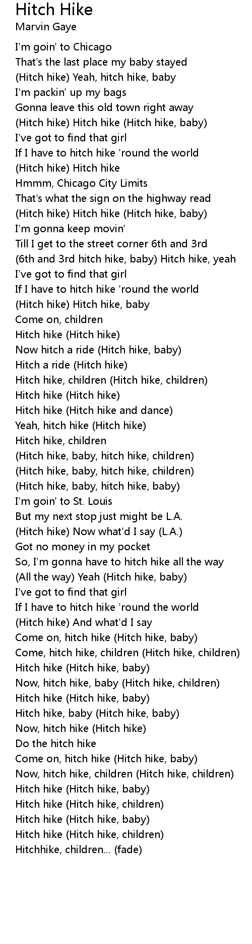 (Hitch hike, baby, hitch hike, baby) |