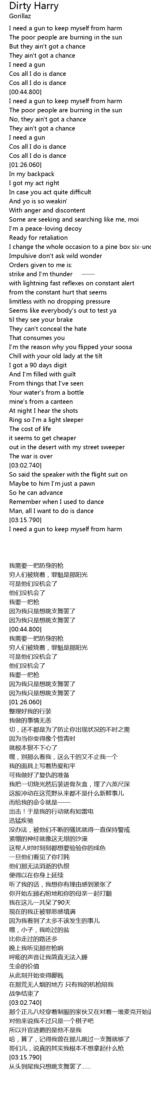| [03:31.200] | I need a gun to keep myself from harm |