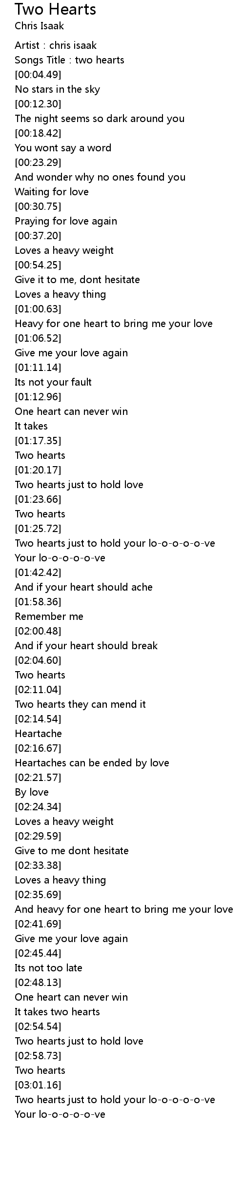 | [03:02.66] | Two hearts just to hold your lo-o-o-o-o-ve |