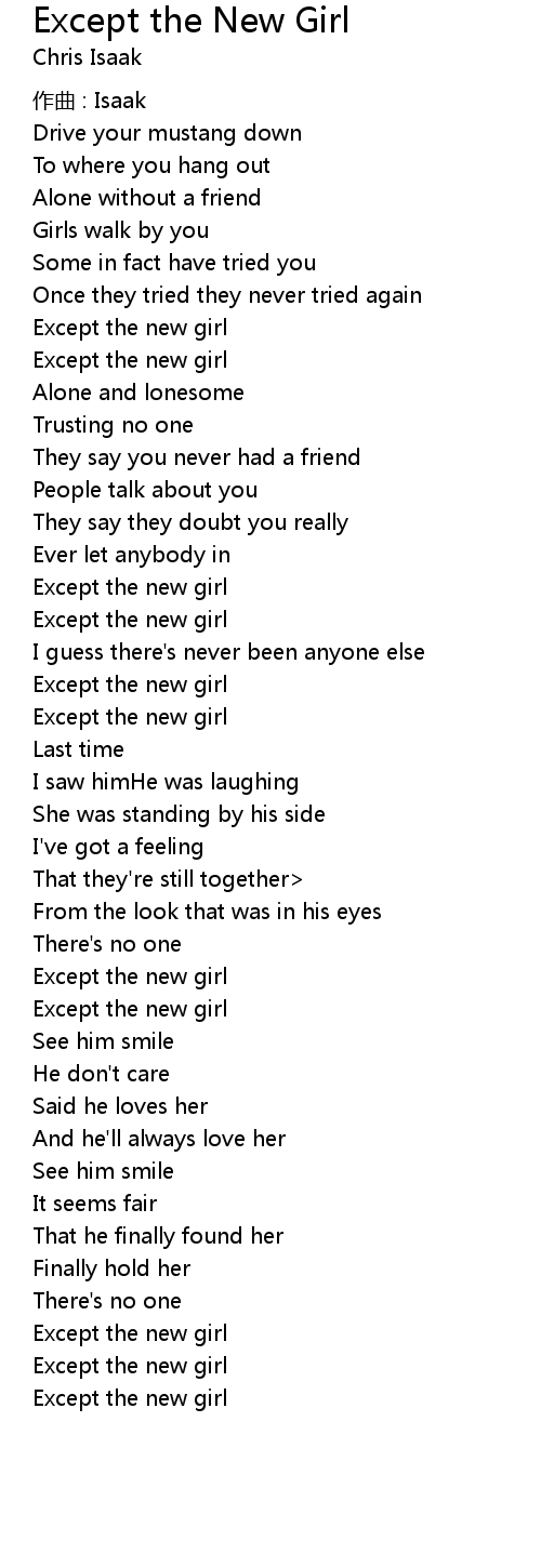 | 歌曲 | Except the New Girl |