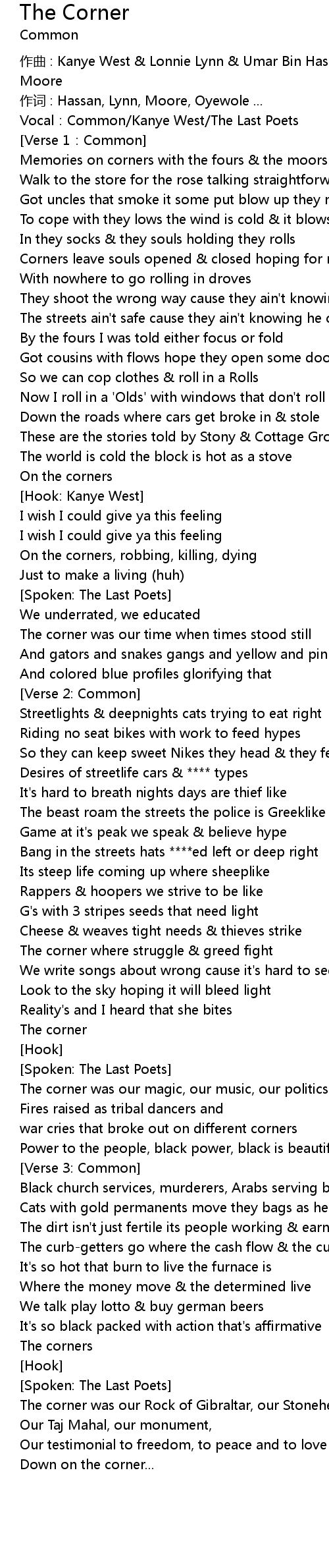 | 歌曲 | The Corner |