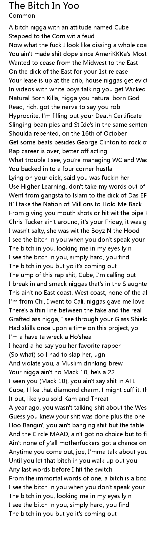 The bitch in you but yo it's coming out |
