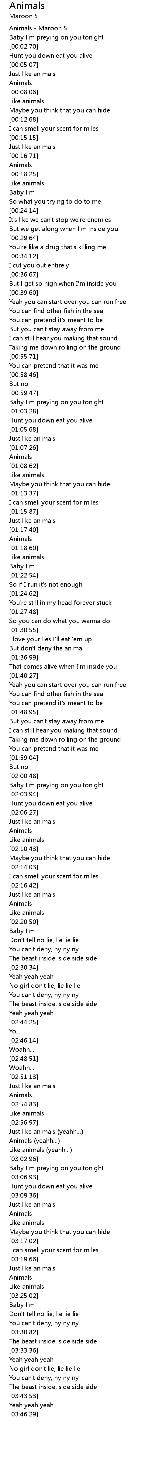 | [02:59.20] | Animals (yeahh...) |
