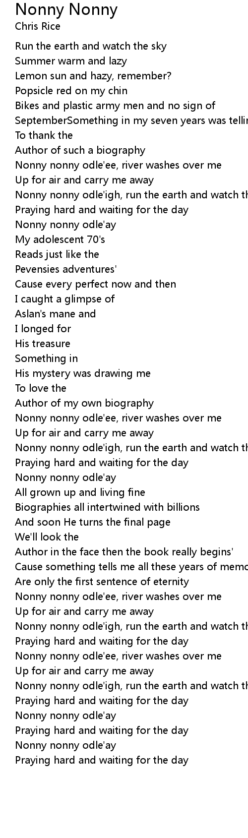 Nonny nonny odle'igh, run the earth and watch the sky |