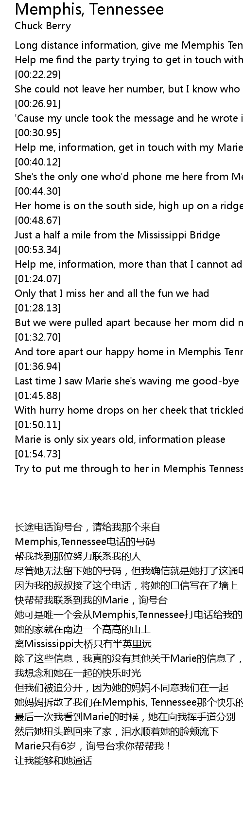 She's the only one who'd phone me here from Memphis Tennessee |