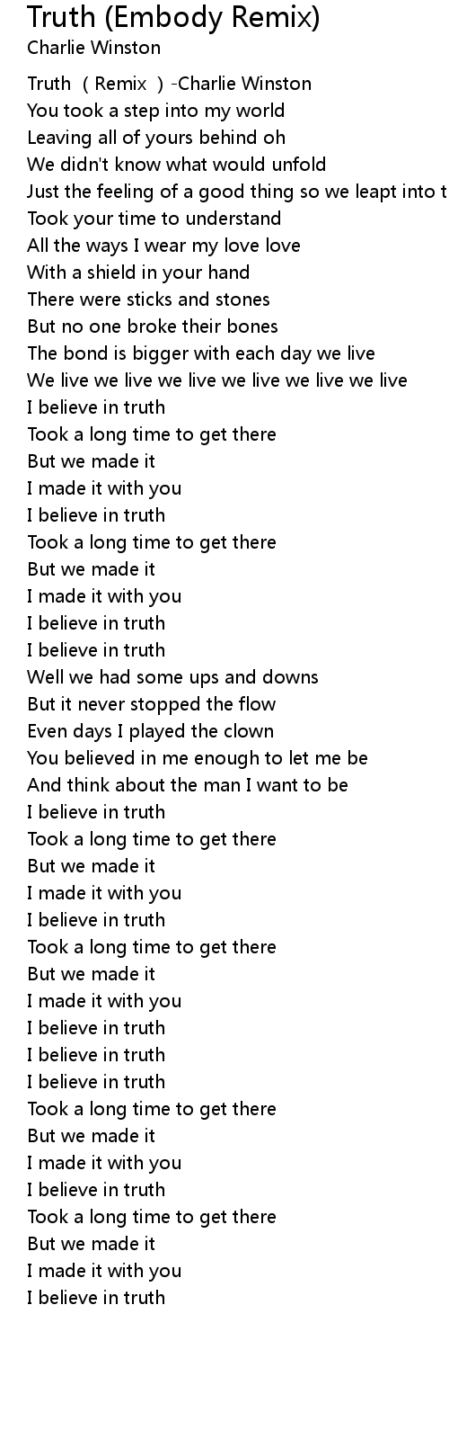 | [00:00.00] | Truth (Remix )-Charlie Winston |