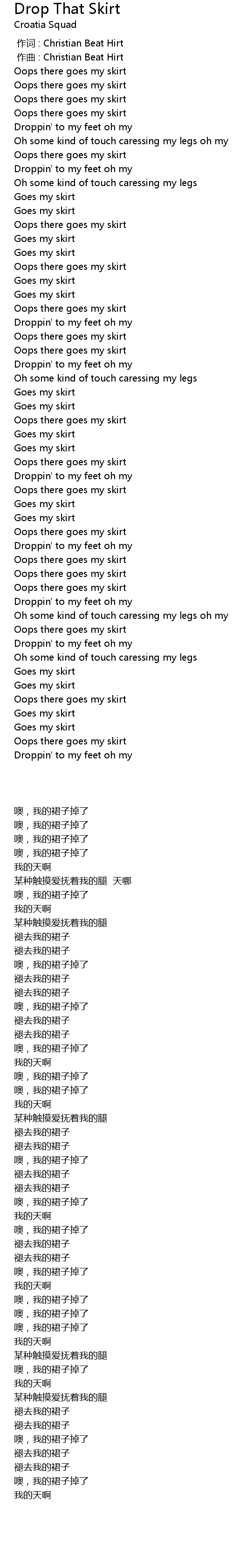 | 歌曲 | Drop That Skirt |