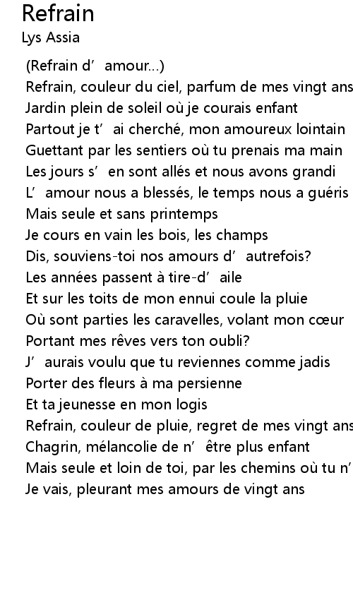 | [00:27.577] | Refrain, couleur du ciel, parfum de mes vingt ans |