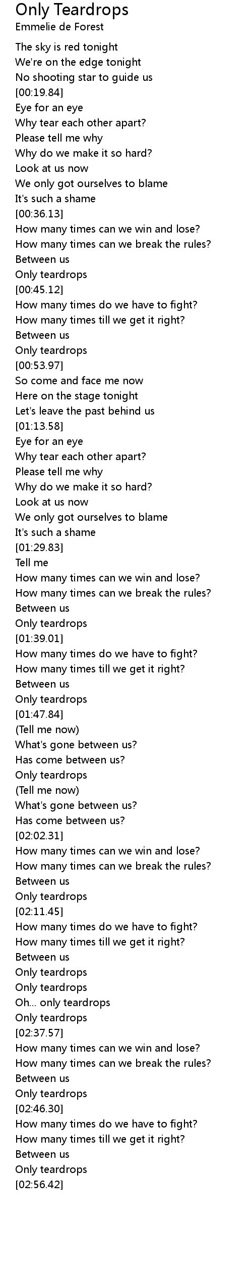 Only Teardrops 歌词