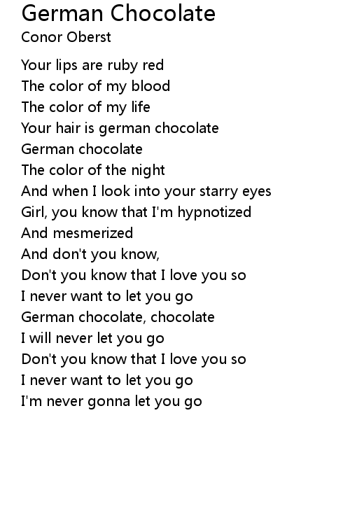 | Your hair is german chocolate | |