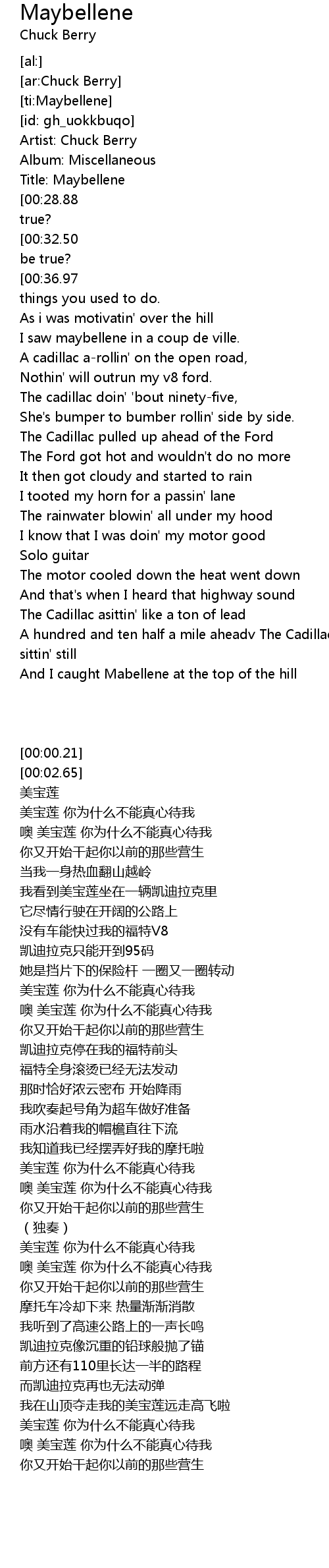 [ti:Maybellene] |