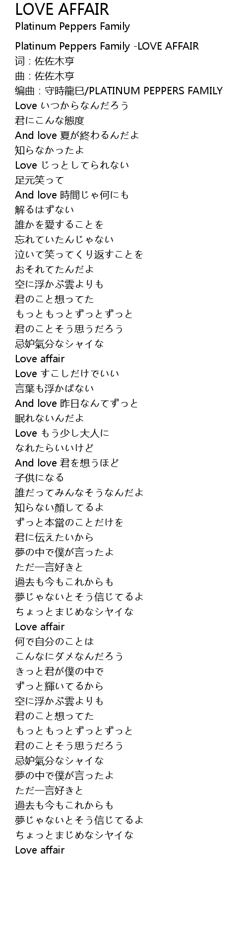 | [00:00.311] | Platinum Peppers Family -LOVE AFFAIR |