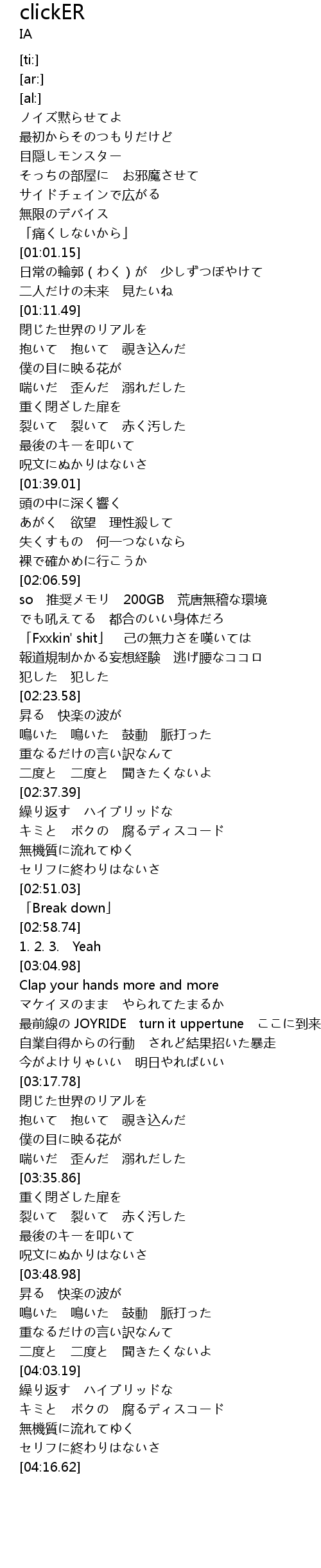 | [00:41.32] | ノイズ黙らせてよ |