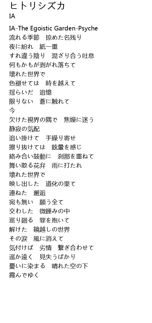 | [00:00.000] | IAThe Egoistic GardenPsyche |