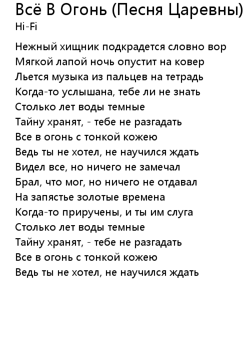 Всё В Огонь (Песня Царевны)