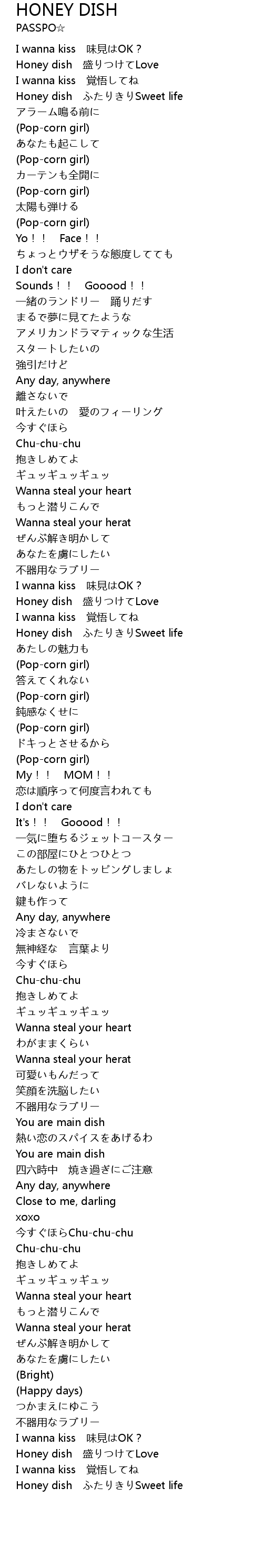 | [03:23.76] | Honey dish 盛りつけてLove |