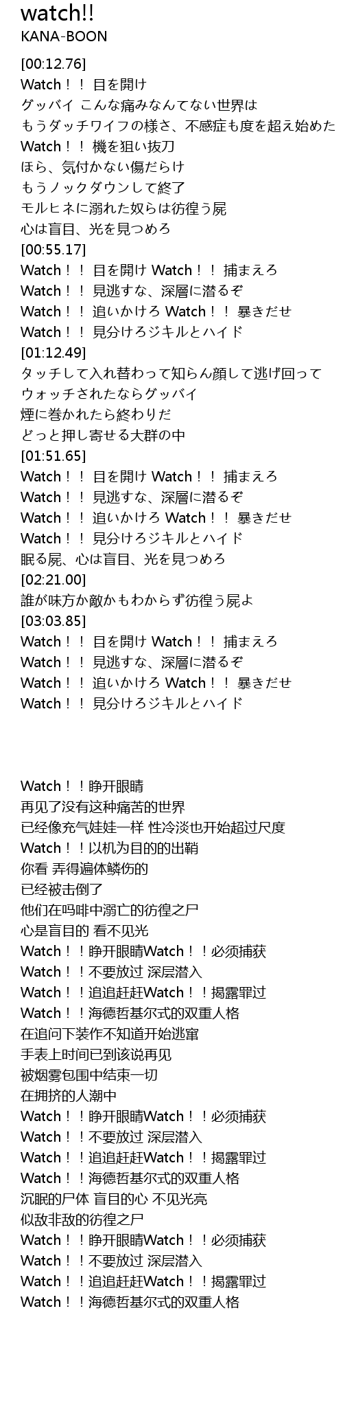 | [01:05.29] | Watch!!追追赶赶Watch!!揭露罪过 |