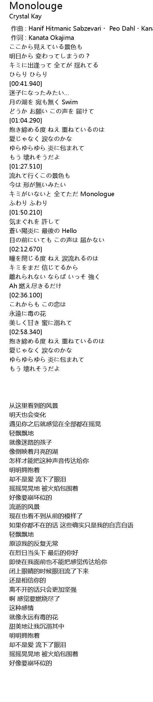 | [01:40.960] | キミがいないと 全てただ Monologue |