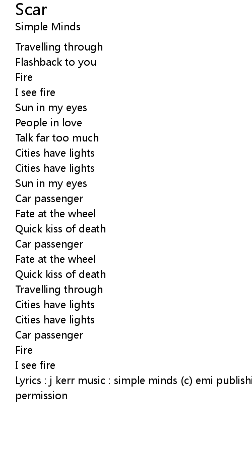 | Lyrics : j kerr music : simple minds (c) emi publishing ltd reproduced without permission |