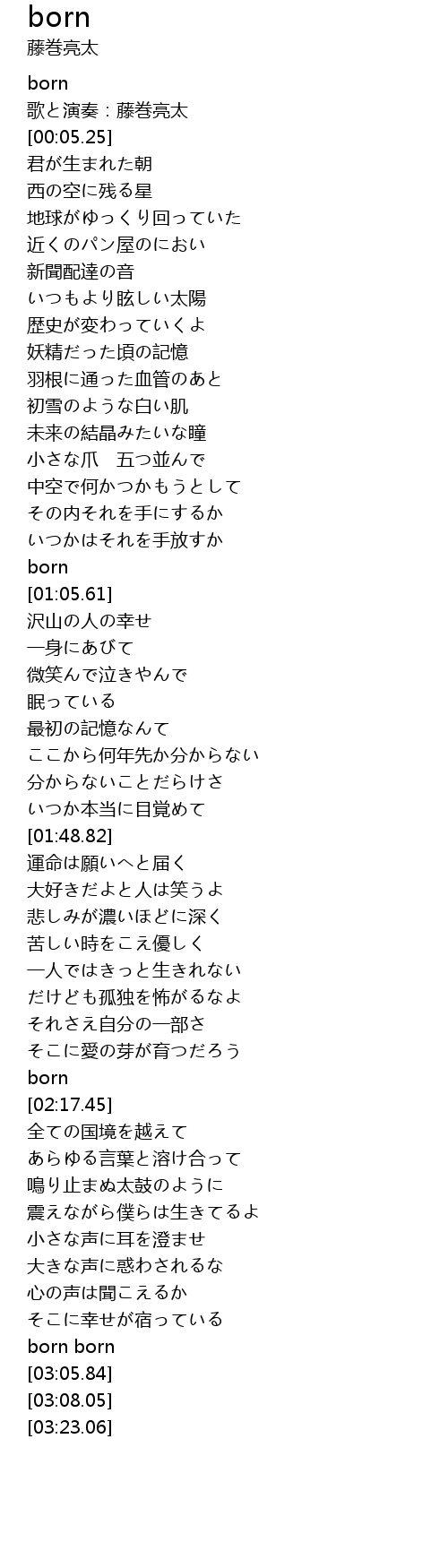 | [00:04.20] | 歌と演奏:藤巻亮太 |