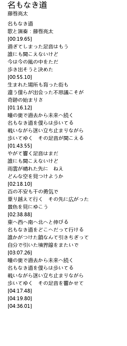 | [00:00.00] | 名もなき道 |