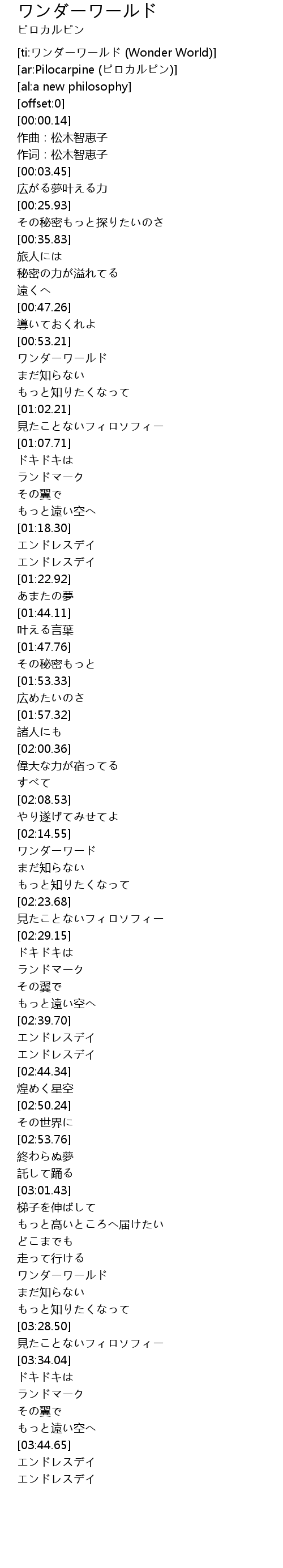 | [ti:ワンダーワールド (Wonder World)] | |