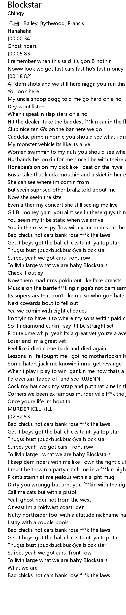 | [03:33.89] | Thugss bust buckbuckbuck ya block star |