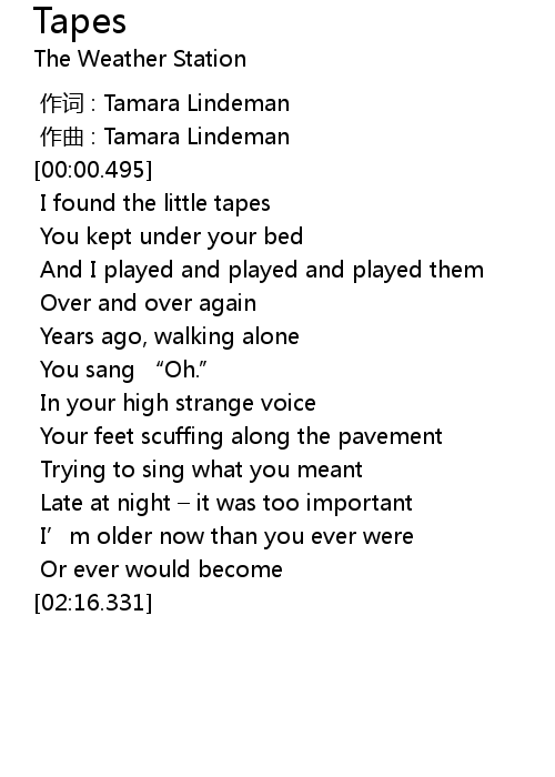 | [00:00.000] | zuo ci : Tamara Lindeman |