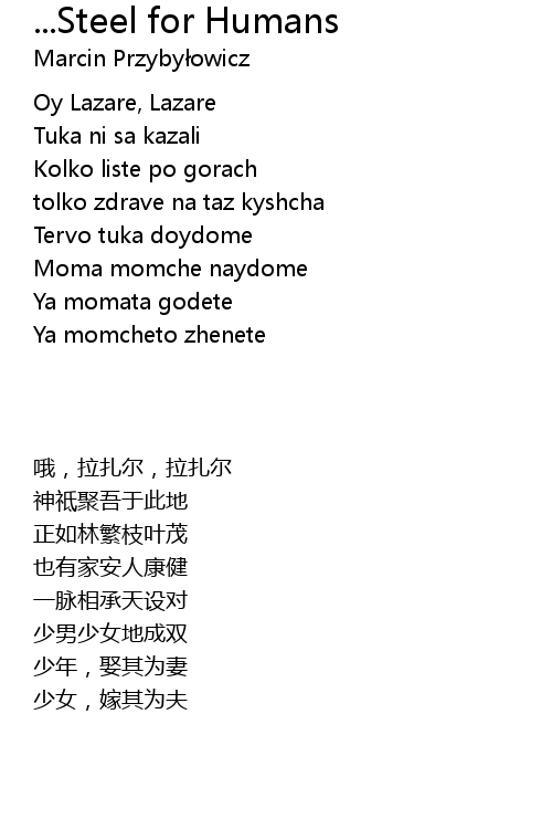 | 歌曲 | ...Steel for Humans |