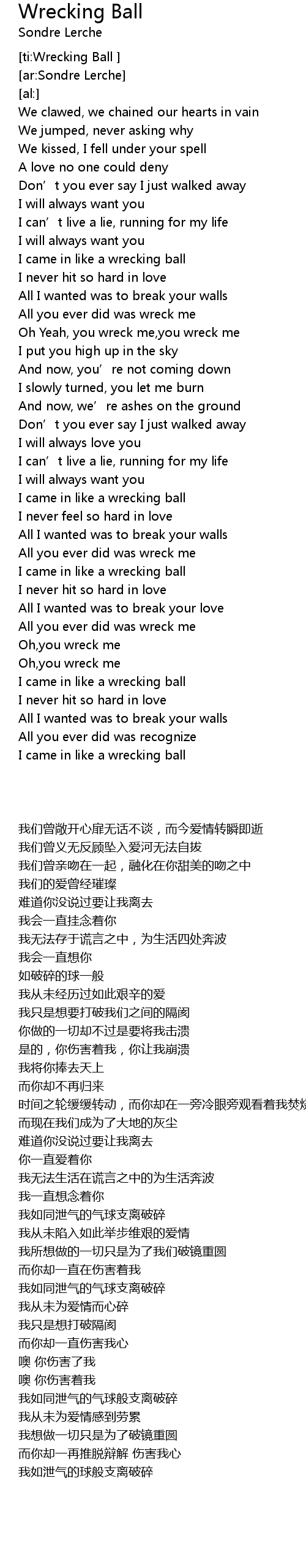 | [ti:Wrecking Ball ] | |