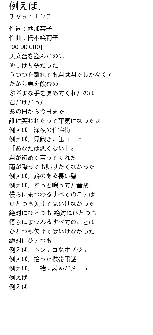 | [01:52.112] | 例えば、ずっと鳴ってた音楽 |