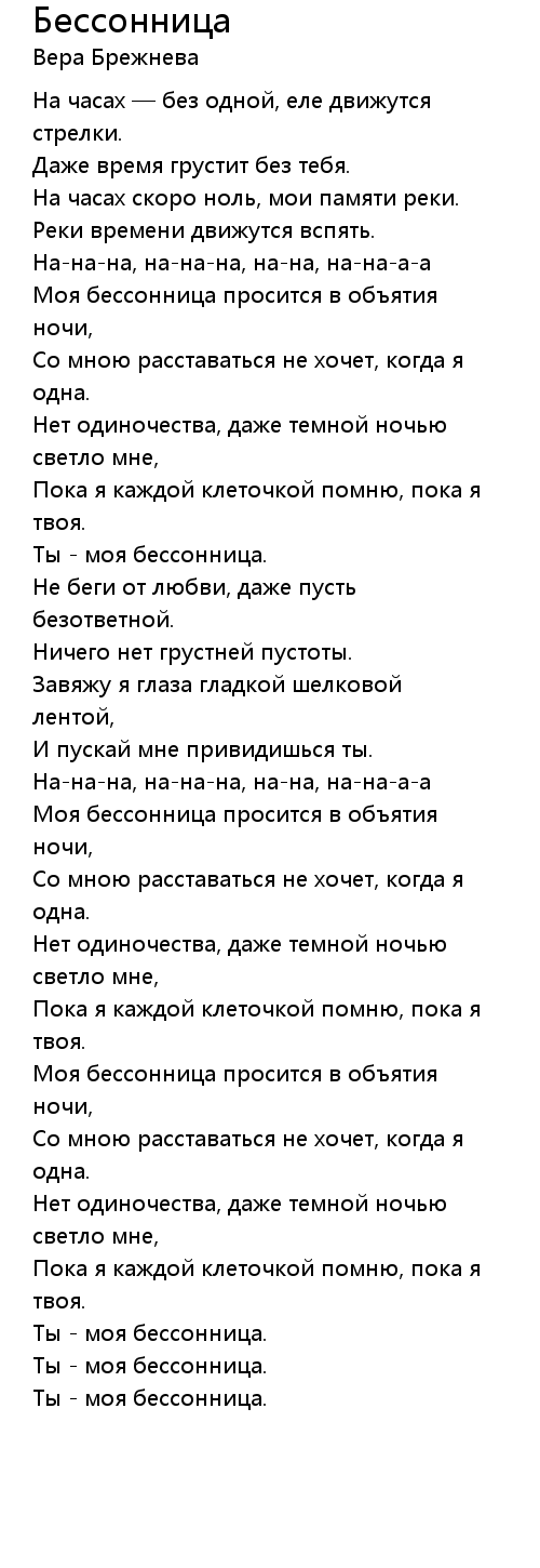 Бессонница 歌词