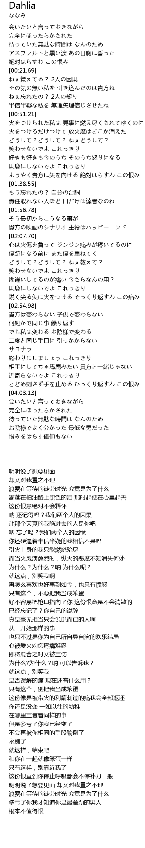 | [03:54.40] | とどめ刺さず手を止める ひっくり返すわ この恨み |