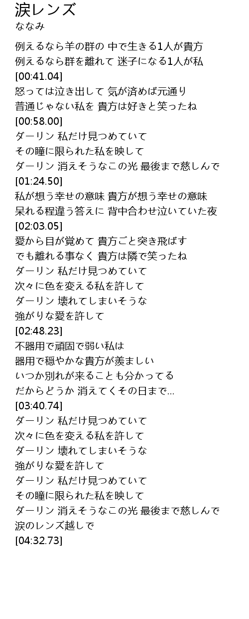 | [03:41.52] | ダーリン 私だけ見つめていて |