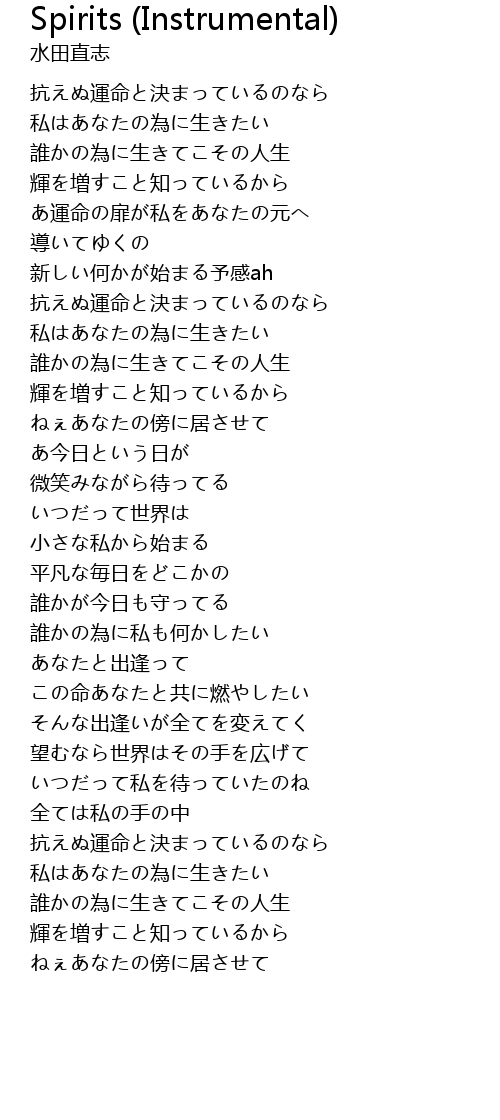 | 歌曲 | Spirits (Instrumental) |