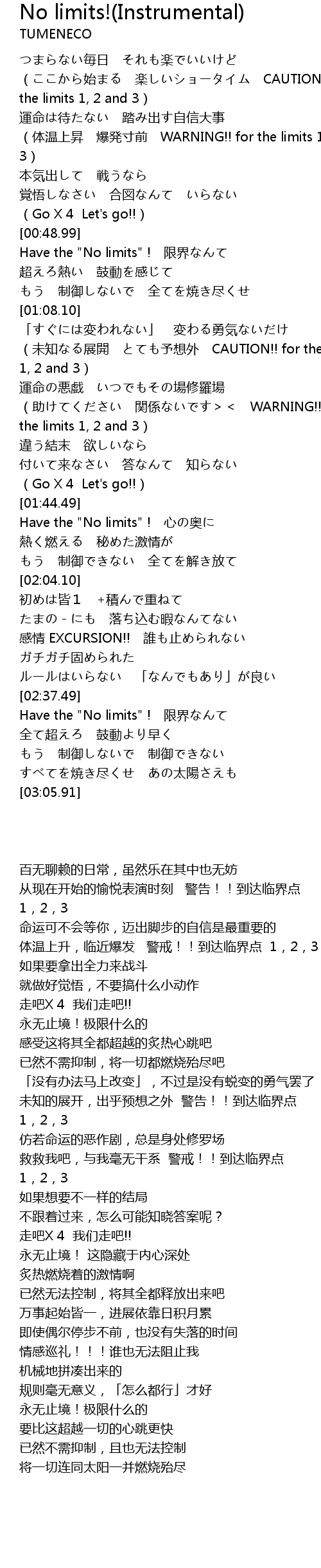| [00:49.16] | Have the "No limits" ! 限界なんて |