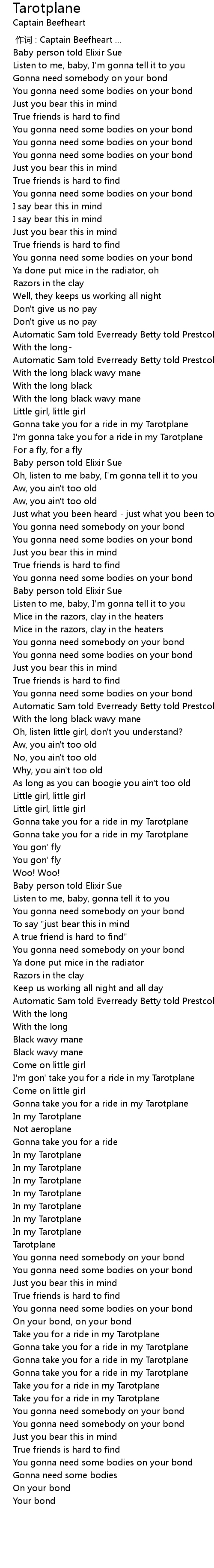 | [00:00.000] | 作词 : Captain Beefheart ... |