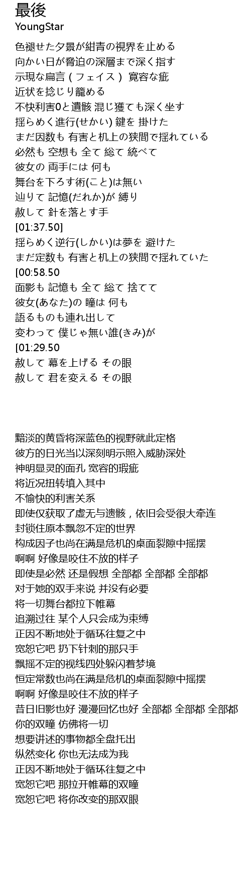 | 歌曲 | 最後 |