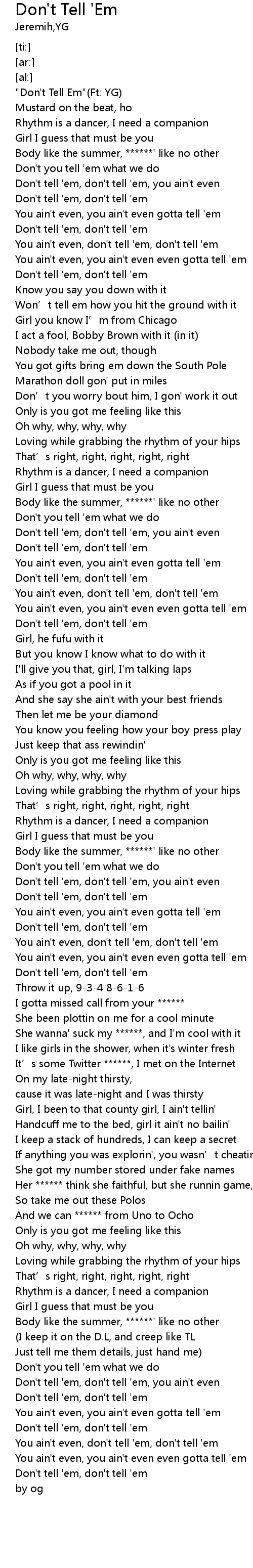 | [00:00.00] | " Don' t Tell Em" Ft: YG |