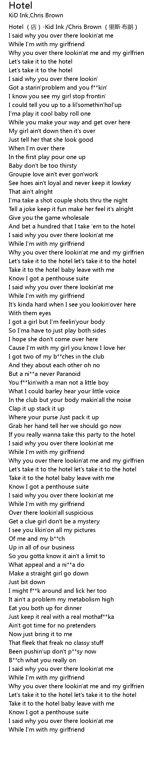 | [00:00.00] | Hotel (店)-Kid Ink /Chris Brown (里斯·布朗) |