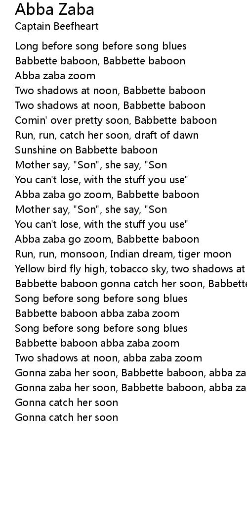 Gonna zaba her soon, Babbette baboon, abba zaba zoom |