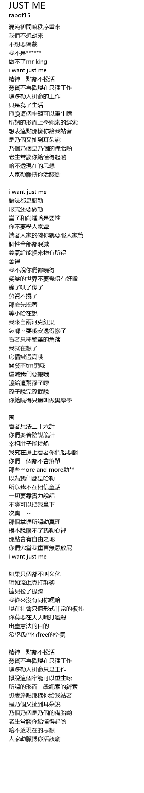 | i want just me | |