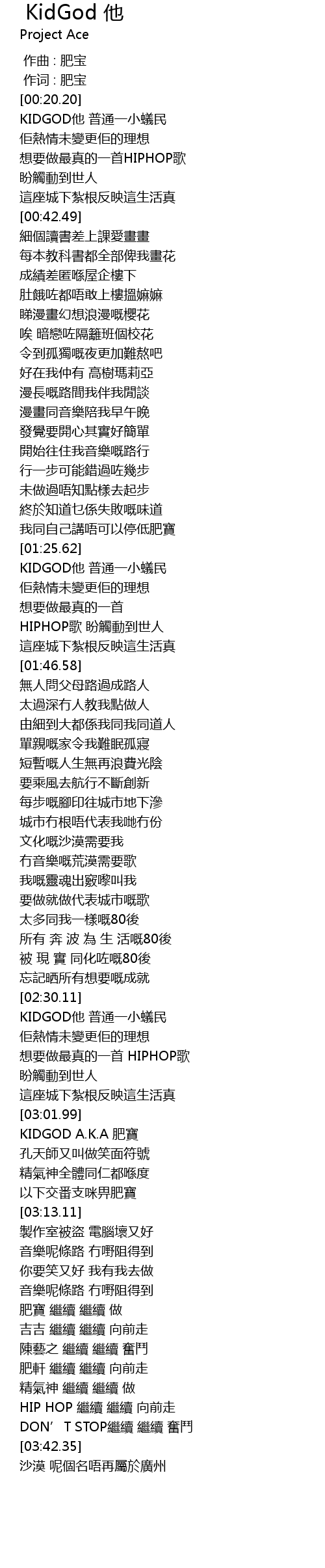 | [03:02.57] | KIDGOD A.K.A 肥寶 |