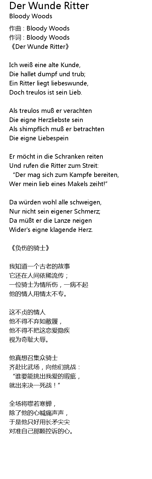 | 歌曲 | Der Wunde Ritter |