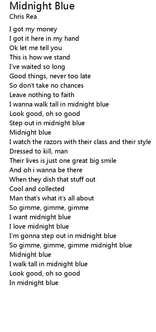 So gimme, gimme, gimme midnight blue |