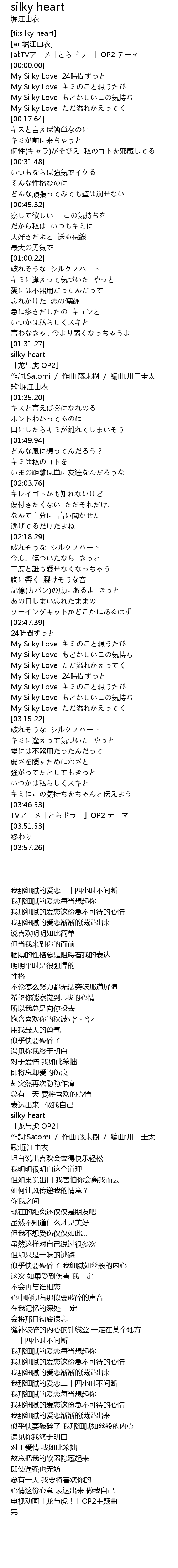 | [02:53.97] | My Silky Love もどかしいこの気持ち |