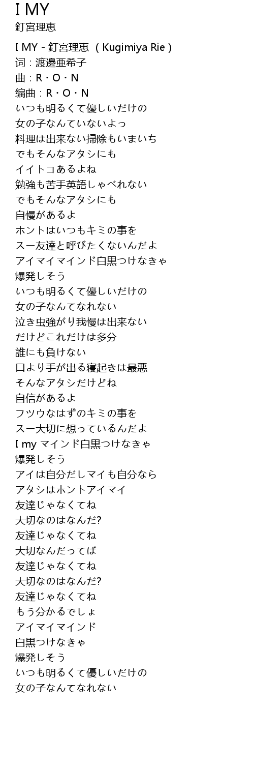| [00:00.10] | I MY dīng gōng lǐ huì Kugimiya Rie |