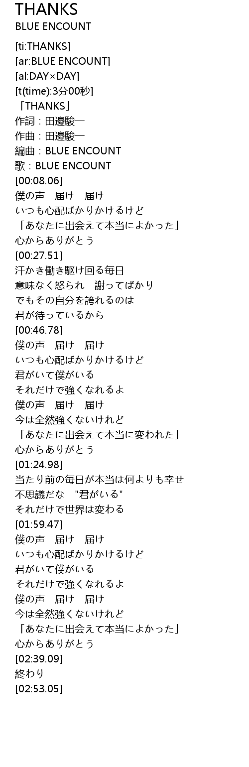 | [00:06.54] | ge: BLUE ENCOUNT |