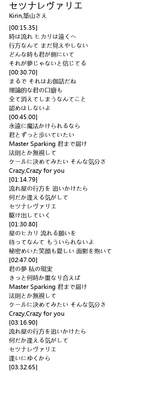 | [00:15.75] | 時は流れ ヒカリは遠くへ |